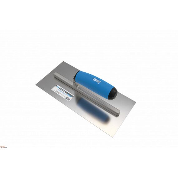 Инструмент для шпаклевания обрезных кромок КНАУФ-листов. Благодаря своей форме позволяет контролировать толщину шпаклевочного слоя, необходимого для приклеивания армирующей ленты в шов без утонения. Гладилка из нержавеющей стали 280×130 мм — долговечная, эргономичная, для эффективного нанесения и разравнивания штукатурки и шпаклевки.