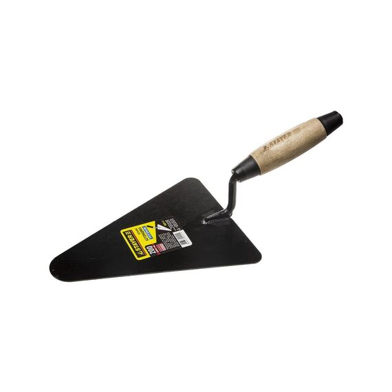 Деревянная усиленная ручка Кельма бетонщика STAYER с треугольным лезвием из стали 2 мм для точного выравнивания бетона. Эргономичная ручка, износостойкое покрытие, усиленная конструкция. Подходит для кладочных и штукатурных работ.