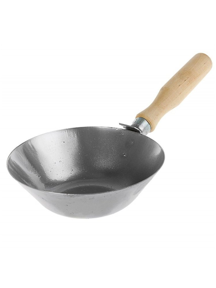 Инструментальная сталь 08ПС, деревянная рукоятка, порошковая окраска. Диаметр 160мм, высота 56мм, объем 0,73л. Предназначен для забора и нанесения различных строительных смессей на поверхности. Прочный стальной ковш 160 мм с деревянной ручкой и крюком — долговечно, удобно, идеально для работы с растворами и смесями на стройке.