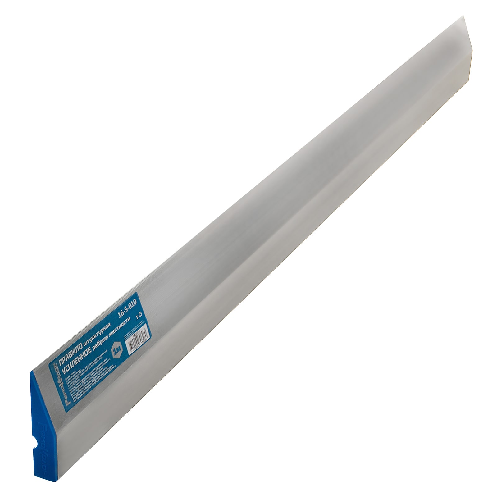 Правило алюминиевое усиленное ребром жесткости используют при штукатурных работах для быстрого и эффективного распределения раствора по обрабатываемой поверхности, для выравнивания стен и пола после нанесения строительного раствора. Применяется для работы со штукатуркой и гипсом. Инструмент имеет заостренную часть, которая предназначена для удаления излишков раствора. Инструмент изготовлен из прочного алюминиевого сплава, имеет профиль "трапеция" толщина стенки 0,9 мм, ребро жесткости придает стойкость инструмента к изгибам корпуса. На одной из сторон правила предусмотрена продольная выемка, которая образует упор для пальцев, благодаря чему удобно держать в руках. Материал изделия обладант особой прочностью, что придает защиту от деформаций и коррозии и увеличивает срок его службы.