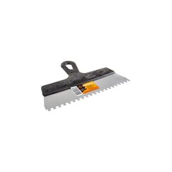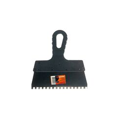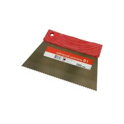 Предназначен для нанесения клеевых материалов на основание при укладке ПВХ покрытий и ковролина. Обеспечивает равномерное и экономичное нанесение клея. Распределяет клеевой слой необходимой толщины по поверхности. Допускается многократное использование с контактными водно-дисперсионными клеями, одноразовое использование с полиуретановыми клеями. Профессиональный зубчатый шпатель 200 мм B1 для точного распределения клея при укладке плитки и полов. Удобная эргономичная ручка.