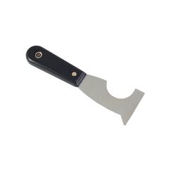 Полотно шпателя из углеродистой стали, пластиковая рукоятка. Применение: Специальная форма шпателя позволяет зачищать трубы и труднодоступные поверхности от краски и т.д. Универсальный инструмент 5-в-1: шпатель, скребок, удаление гвоздей и зачистка, стальное полотно, удобная нескользящая ручка.