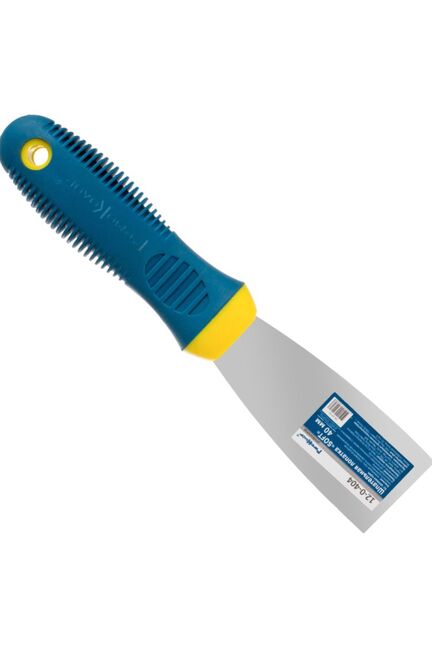 Нержавеющая сталь, полированная рабочая поверхность усиленного полотна, прорезиненная двухкомпонентная рукоятка. Применение: для нанесения строительных смесей, сглаживания и выравнивания шпаклевочного слоя. Зеркальная нержавеющая сталь, комфортная 2К-ручка, ширина 40 мм — профессиональный выбор для шпатлевки и отделочных работ в трудных местах.