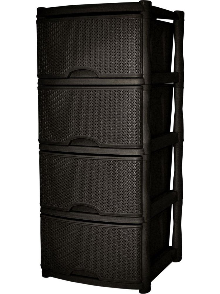 Удобное и практичное решение для хранения в доме, офисе или мастерской — этот четырехсекционный комод с плетёной поверхностью rattan эффектно впишется в любой интерьер. Легкий, но прочный пластиковый корпус обеспечивает долгий срок службы и простоту ухода, а элегантный цвет "Тёмный каштан" добавляет уюта и стиля вашему пространству.