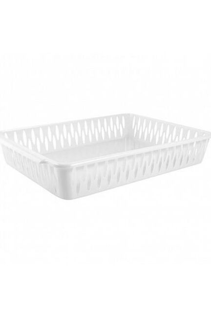 Прочная пластиковая корзинка формата A4 355×250×60 мм для удобного хранения и транспортировки стройматериалов, инструментов и комплектующих.