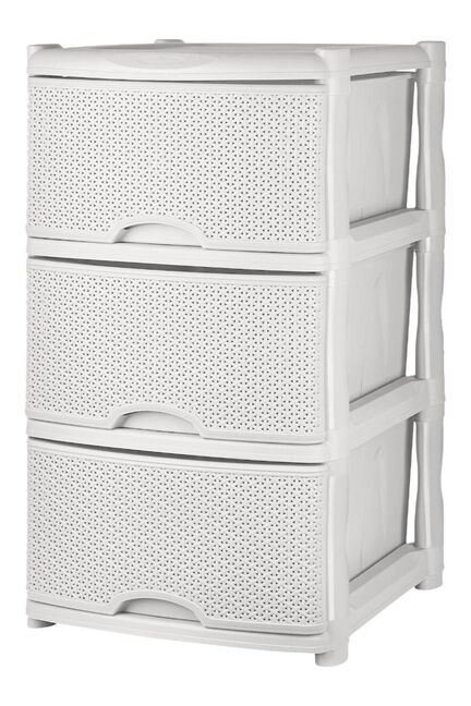 Практичное и стильное решение для хранения вещей и инструментов в доме или мастерской! Трёхсекционный комод с имитацией плетения ротанг гармонично впишется в любой интерьер, позволяя удобно разместить инструменты, материалы, бытовые и хозяйственные принадлежности. Подходит для жилых комнат, кладовых и мастерских.