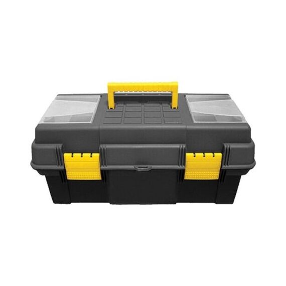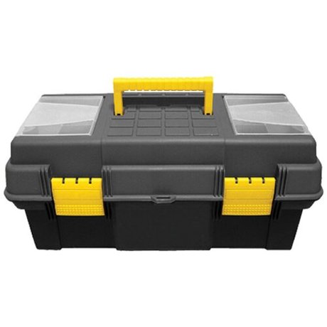 Ящик для хранения инструмента и других хозяйственных нужд. Классическая форма, внутренний лоток для эффективной организации хранения. Блоки для мелочей на крышке идеально подходят для размещения мелких скобяных изделий. Надежные замки позволят безопасно переносить ящик с большой загрузкой. Отверстие для крепления навесного замка позволит защитить инструмент при транспортировке. Прочный и вместительный ящик 19" для инструментов и мелочей: надежные защелки, удобная ручка, компактные размеры, устойчив к влаге и ударам.