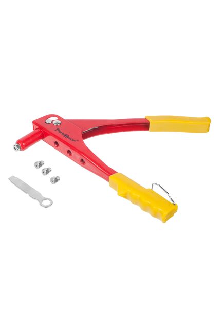 Предназначен для соединения листовых материалов с помощью вытяжных заклепок. Комплектация: заклепочник, сменные насадки 2,4 мм, 3,2 мм, 4,0 мм, 4,8 мм, ключ для смены насадок. Материал корпуса сталь, рукоятки с пластиковыми чехлами обеспечивают удобство в работе. Механический заклепочник 250 мм для заклепок 2,4-4,8 мм, эргономичная рукоятка, стальной корпус, надёжен, удобен в работе, подходит для разных задач.