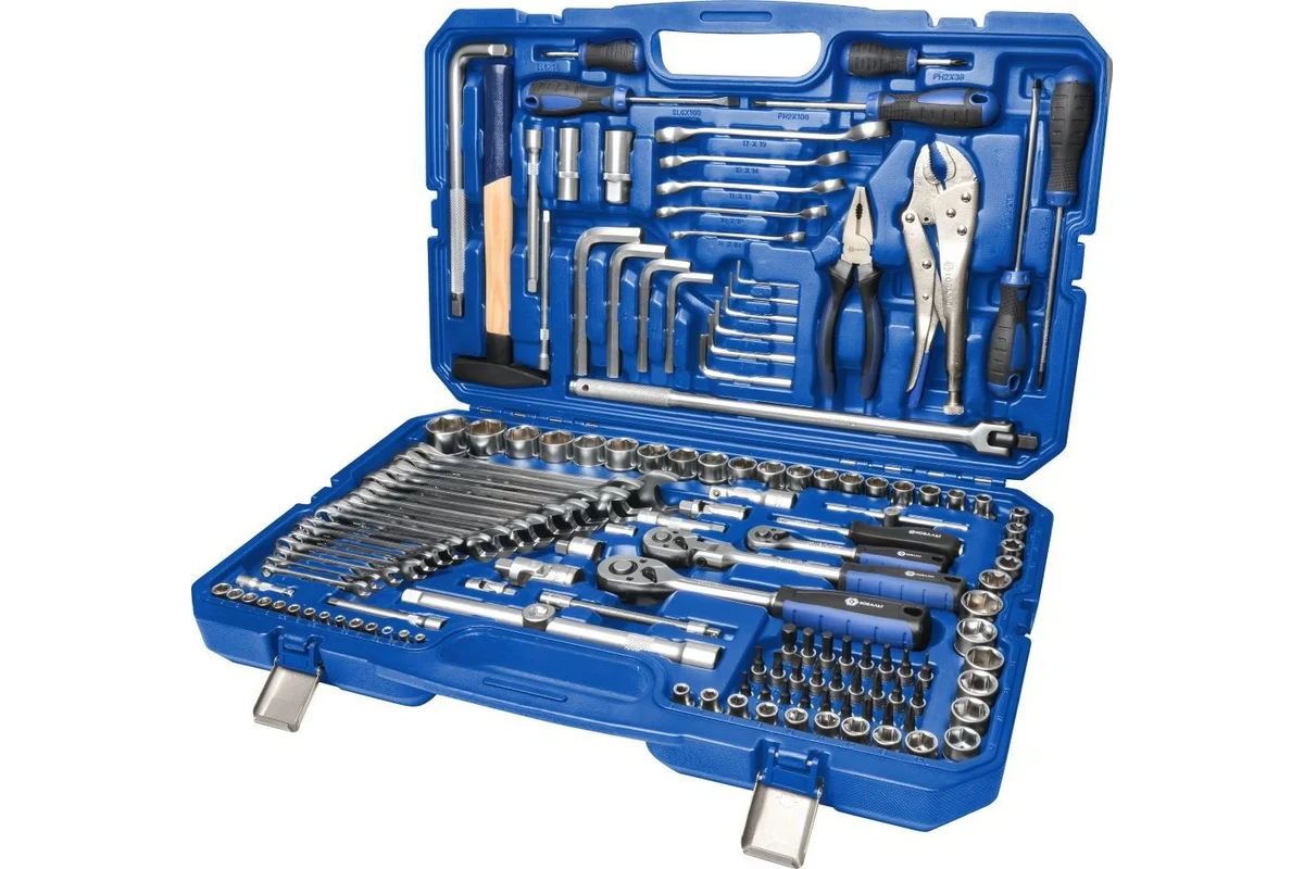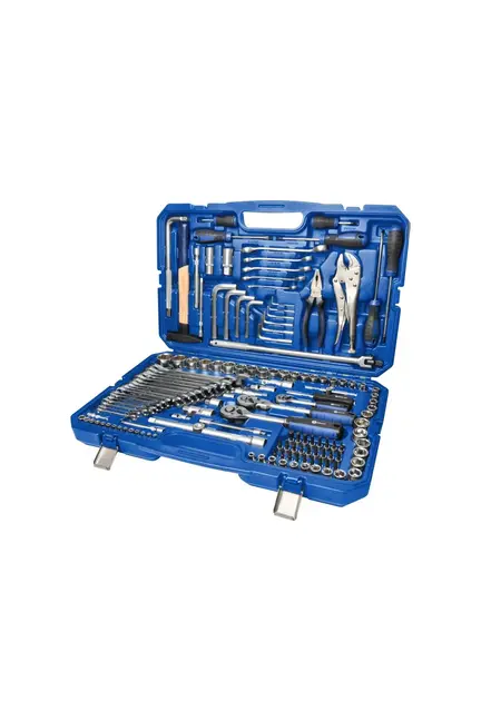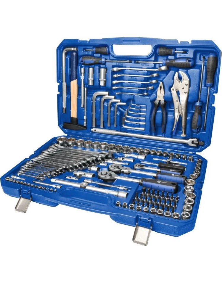 Ремонт и сборка без компромиссов: 143 предмета из хром-ванадиевой стали, 3 трещотки, крепкий кейс. Универсальность и долговечность в одном наборе.