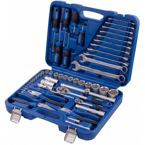Универсальный набор инструмента КОБАЛЬТ применяется при ремонте и столярно-слесарных работах. Комплектация позволяет выполнять широкий спектр задач. Длительный срок службы обеспечен материалом изготовления - устойчивой к деформации хромованадиевой сталью. Для уверенного хвата инструмента и удобства работы рукоятки выполнены из двухкомпонентного пластика. Набор поставляется в прочном пластиковом кейсе для хранения и транспортировки.
