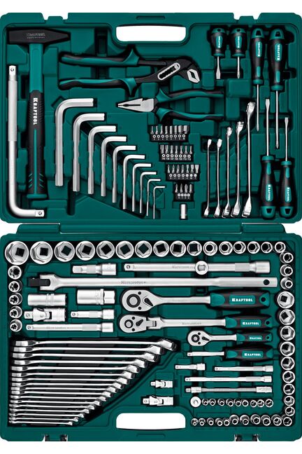 Универсальный набор 142 предмета для ремонта и обслуживания авто и техники: хром-ванадиевая сталь, прочный кейс, полная комплектация.