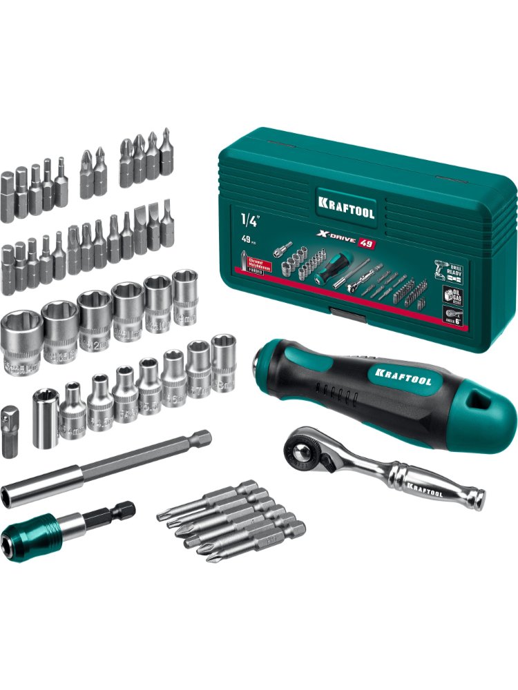 Набор бит и головок с битодержателем и трещоткой 49 пр. 25816 X-Drive KRAFTOOL