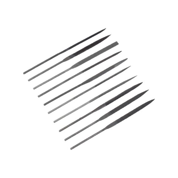 Набор надфилей, 10 предметов, 3x140 мм РемоКолор изготовлен из углеродистой стали У12, У13 с твердостью режущей части 60-65 HRc. Набор из 10 надфилей 3×140 мм для обработки металла, дерева, пластика. Прочные, разные формы, удобные ручки, универсальное применение.