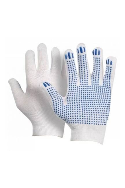 Перчатки хб с ПВХ точка 10кл./4нит. белые