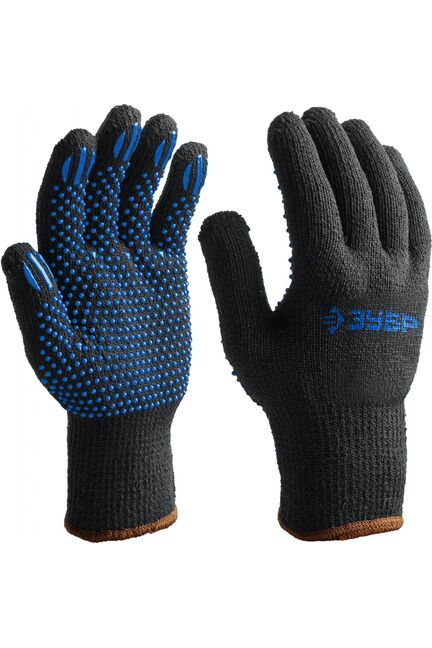 Перчатки утепленные ЗУБР предназначены для защиты рук от общих производственных загрязнений. Противоскользящее покрытие обеспечивает надежный захват. Тёплые перчатки с ПВХ усиливают хват, защищают от холода и износа, удобны для любых строительных и хозяйственных работ.