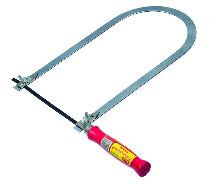 Стальная хромированная рамка плоский профиль, деревянная рукоятка. Применение: Предназначен для фигурного выпиливания в плоских заготовках небольшой толщины из фанеры или других легкообрабатываемых материалов. Длина рабочей части 125мм, глубина пропила 250мм. Без полотна. Ручной лобзик 300 мм с прочной рамой и деревянной рукояткой для точного и чистого реза по дереву, фанере и другим материалам.