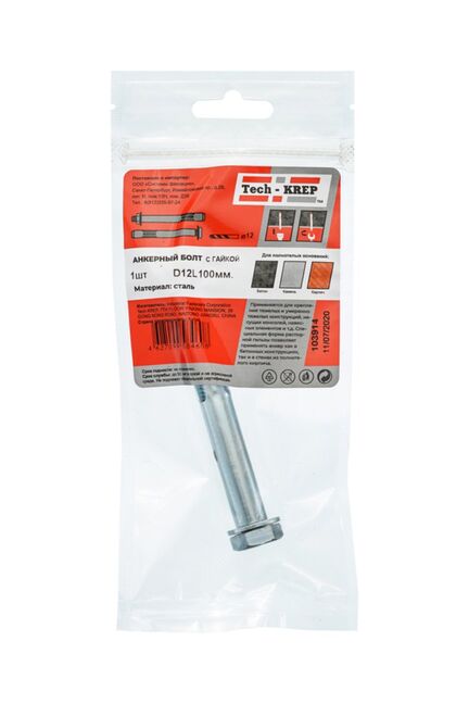 Анкерный болт с гайкой 12х200 мм от Tech-Krep представляет собой надежный крепежный элемент, предназначенный для монтажа конструкций в полнотелые материалы, такие как бетон, кирпич или природный камень. Изготовлен из высокопрочной стали с антикоррозийным покрытием, что обеспечивает долговечность и устойчивость к внешним воздействиям. Болт состоит из распорной втулки, шпильки с метрической резьбой и гайки, что гарантирует прочное и устойчивое крепление. Диаметр 12 мм и длина 200 мм позволяют использовать его для крепления массивных конструкций и оборудования. Поставляется в удобной упаковке по 1 штуке.