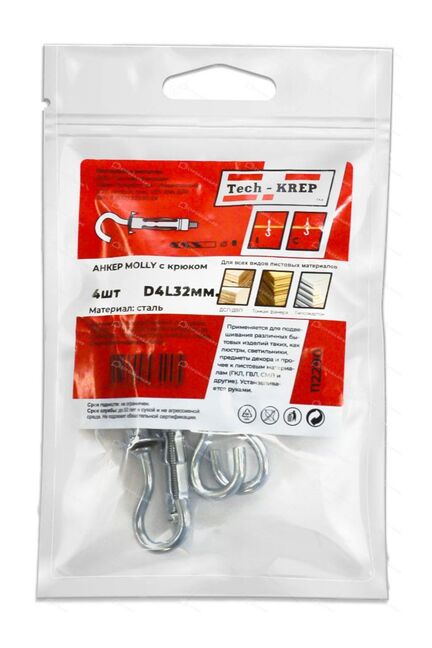 Анкер (дюбель) Молли RO (с полукольцом) М4х32 (4 шт) - пакет Tech-Krep