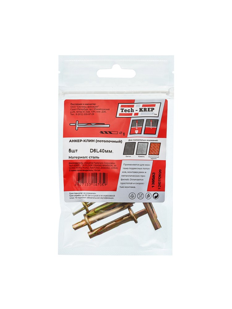 Анкер-клин М6х40 (5 шт.) в пакете от Tech-Krep представляет собой надежный крепежный элемент, предназначенный для фиксации конструкций в бетоне и других твердых материалах. Изготовлен из высококачественной стали с антикоррозийным покрытием, что обеспечивает долговечность и стойкость к внешним воздействиям. Конструкция анкера с клиновым принципом действия гарантирует прочное и устойчивое крепление даже при высоких нагрузках. Подходит для монтажа в полнотелых основаниях, таких как бетон, кирпич или природный камень. В комплекте 5 штук, что удобно для небольших строительных и ремонтных работ.