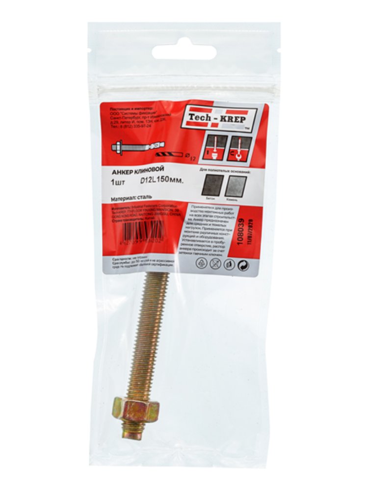 Анкер клиновой 12х150 мм от Tech-Krep представляет собой надежный крепежный элемент, предназначенный для создания прочных соединений в бетоне и других твердых материалах. Изготовлен из высококачественной стали с антикоррозийным покрытием, что обеспечивает долговечность и устойчивость к внешним воздействиям. Конструкция анкера включает клиновой механизм, который расширяется при затягивании, гарантируя максимальную фиксацию. Диаметр 12 мм и длина 150 мм делают его универсальным решением для различных строительных задач. В комплекте 1 штука, упаковка – пакет.