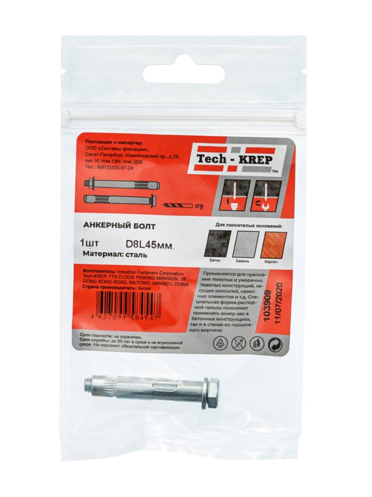 Анкерный болт 8х45 мм от Tech-Krep представляет собой надежный крепежный элемент, изготовленный из высокопрочной углеродистой стали с антикоррозийным цинковым покрытием. Предназначен для создания прочных соединений в бетоне, кирпиче и других твердых строительных материалах. Конструкция болта включает распорную втулку, которая обеспечивает равномерное распределение нагрузки, гарантируя устойчивость крепления даже при значительных нагрузках. Упаковка содержит 1 штуку, что удобно для точечного применения в небольших проектах. Простота монтажа позволяет использовать крепеж как профессионалам, так и новичкам в строительстве.