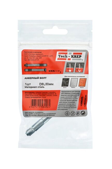 Анкерный болт 8х80 (1 шт) - пакет Tech-Krep в Амурск