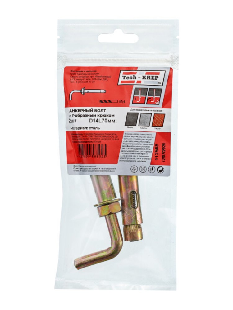 Анкерный болт с Г-образным крюком HL 14x70 от Tech-Krep представляет собой надежный крепежный элемент, предназначенный для монтажа тяжелых конструкций в бетонные и кирпичные основания. Изготовлен из высокопрочной стали с антикоррозийным покрытием, что обеспечивает долговечность и устойчивость к внешним воздействиям. Размер болта 14x70 мм позволяет использовать его для крепления габаритных и тяжелых изделий. В комплекте поставляется 2 штуки в удобной упаковке. Этот крепеж идеально подходит для строительных и ремонтных работ, где требуется высокая прочность соединения.