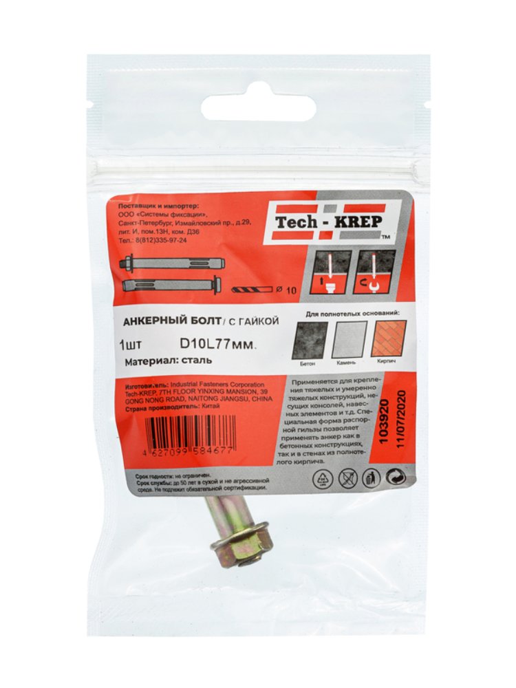 Анкерный болт с гайкой размером 10х77 мм от Tech-Krep представляет собой надежный крепежный элемент, предназначенный для создания прочных соединений в строительных конструкциях. Изготовлен из высококачественной стали с антикоррозийным покрытием, что гарантирует долговечность и устойчивость к внешним воздействиям. Болт оснащен гайкой, которая обеспечивает удобство монтажа и надежную фиксацию. Упаковка содержит 1 штуку, что удобно для точечного использования. Подходит для работы с бетоном, кирпичом и другими твердыми материалами.