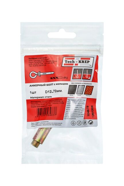 Анкерный болт с кольцом 12х70 (1 шт) - пакет Tech-Krep в Амурск