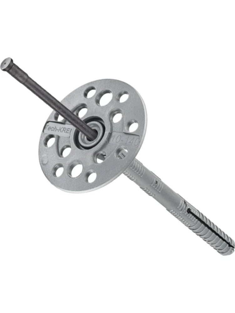 Дюбель крепления теплоизоляции с пластиковым гвоздём. Материал - полипропилен Борт – потайной. Дюбель предназначен для крепления легких термоизоляционных материалов к бетонному или кирпичному основанию. Шляпка дюбеля способствует надежному удержанию материала теплоизоляции, препятствуя прорыву в месте крепления. Ребра перед распорной зоной препятствуют проваливанию дюбеля в просверленное отверстие. Прочный дюбель 10×140 мм для надежной фиксации теплоизоляции в бетон и кирпич, эффективен при монтаже фасадов, комплект 500 штук.