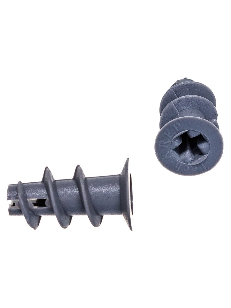 крепление легких конструкций (деревянные направляющие, металлические полки, кронштейны, карнизы, элементы декора и пр.) к тонкостенным листовым основаниям из гипсокартона. Для быстрого монтажа в ГКЛ, выдерживает нагрузку до 25 кг, 200 шт. в упаковке, материал – нейлон, простая установка без сверления.