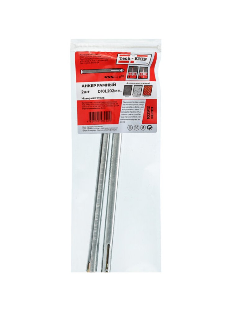 Дюбель металлический рамный 10х202 мм от Tech-Krep предназначен для надежного крепления рамных конструкций и других элементов к основаниям из бетона, кирпича и природного камня. Изготовлен из прочной стали с антикоррозийным покрытием, что обеспечивает долговечность и устойчивость к внешним воздействиям. Длина 202 мм и диаметр 10 мм позволяют использовать его для монтажа тяжелых конструкций, обеспечивая высокую прочность соединения. В комплекте 2 штуки, упакованы в удобный пакет для хранения и транспортировки.