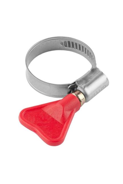 Обжимной хомут 8–12 мм из нержавеющей стали с бабочкой: антикоррозийное покрытие, простая установка вручную, прочная и герметичная фиксация.