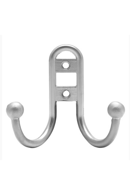Двухрожковый крючок из металла с покрытием под серебро, компактен, легко крепится, подходит для дома, офиса и ванной, выдерживает высокую нагрузку.