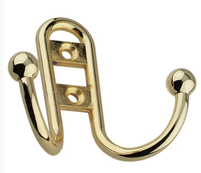 Двурожковый крючок с золотым покрытием – прочный, антикоррозийный, подходит для мебели, легко устанавливается и идеально впишется в интерьер.
