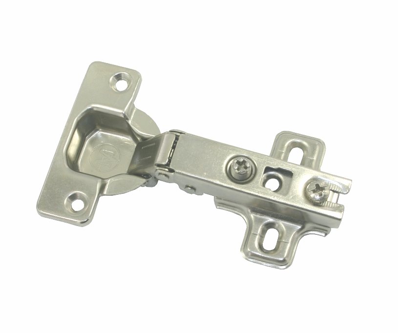 Четырехшарнирная петля с углом открытия 105°, накладная, обеспечивает плавное открытие и долговечность для шкафов и кухонной мебели.