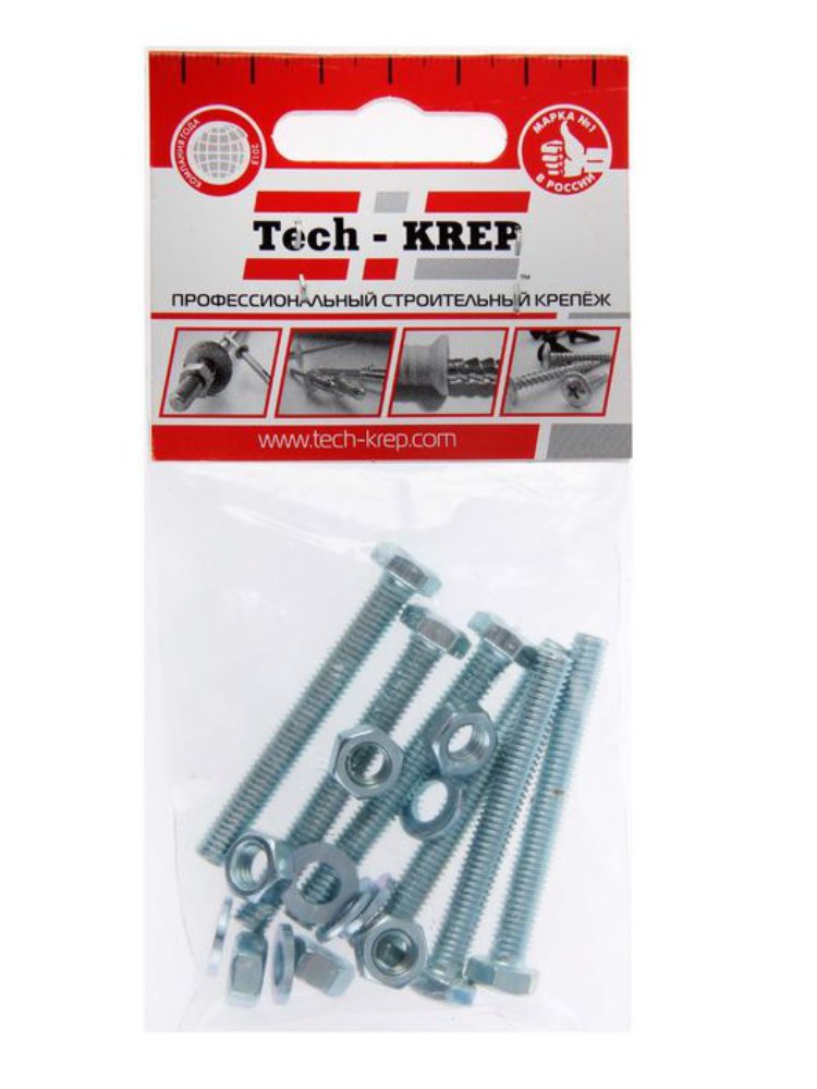Болт DIN933 с шестигранной головкой оцинкованный размером М6х50 в комплекте с гайкой и шайбой (6 штук) в удобной упаковке от Tech-Krep представляет собой надежное крепежное изделие, выполненное из высококачественной стали с цинковым покрытием для защиты от коррозии. Длина болта составляет 50 мм, диаметр резьбы – 6 мм, что обеспечивает прочное и долговечное соединение. Шестигранная головка позволяет использовать стандартные инструменты для монтажа, а комплектация с гайкой и шайбой упрощает установку. Такой набор идеально подходит для различных строительных и ремонтных работ, где требуется надежная фиксация элементов.