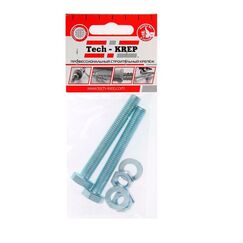 Болт DIN933 М8х100 оцинкованный с шестигранной головкой, в комплекте с гайкой и 2 шайбами, Tech-Krep. Надежный крепеж для строительства и ремонта.