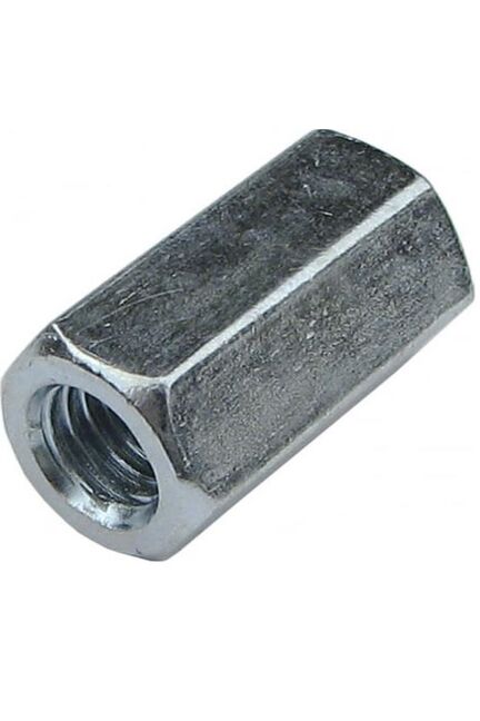 Соединительная гайка М14, оцинкована для защиты от коррозии, подходит для удлинения шпилек и болтов. Комплект 2 шт. в удобной упаковке.