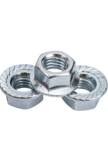 Прочная оцинкованная гайка с фланцем DIN 6923 М8 для надежных соединений, устойчива к коррозии, комплект 35 шт., универсальна для строительства и ремонта.