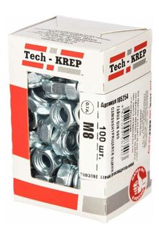 Гайка самоконтрящаяся оцинкованная М8 DIN 985 от Tech-Krep, 100 шт. в коробке с окном. Надежный крепеж, с защитой от коррозии и раскручивания.