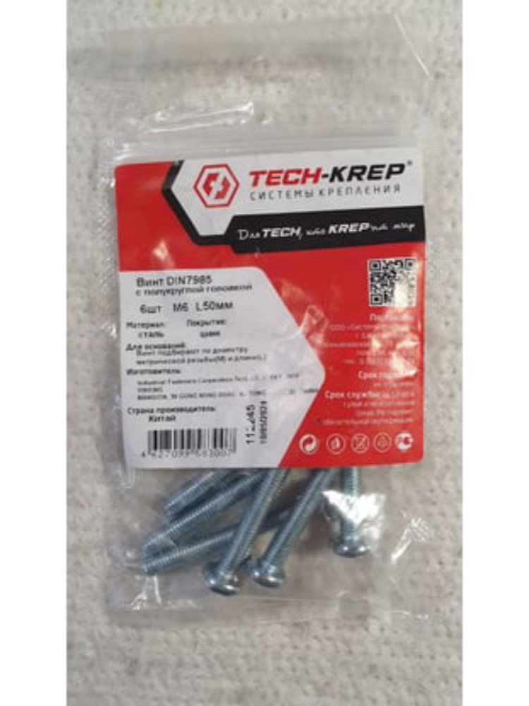 Винт с полукруглой головкой оцинкованный M6х50 от Tech-Krep предназначен для надежного крепления различных конструкций. Изготовлен из углеродистой стали с цинковым покрытием, что обеспечивает защиту от коррозии и долговечность. Размер M6 (диаметр 6 мм) и длина 50 мм делают его универсальным для многих задач. Полукруглая головка обеспечивает эстетичный внешний вид соединения и удобство монтажа. В упаковке 6 штук, что оптимально для небольших ремонтных и строительных работ. Подходит для использования с гайками и шайбами соответствующего размера.
