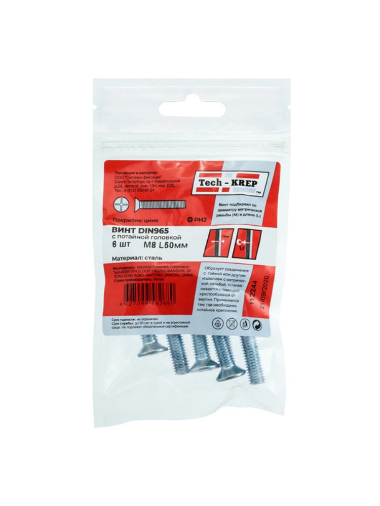 Винт DIN965 с потайной головкой оцинк. M8х50 (6 шт) - пакет Tech-Krep