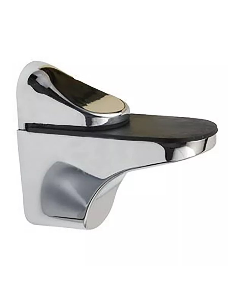 Прочный держатель для стеклянных и деревянных полок толщиной 5–22 мм, выдерживает до 20 кг, устойчив к коррозии, стильный матовый хром.