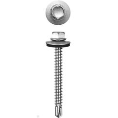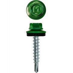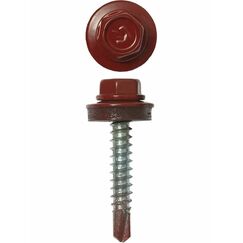 Стальные саморезы с шестигранной со сверловидным наконечником, укомплектованные шайбой с резинкой, для крепления кровельных материалов к деревянной обрещетки. Окраска RAL 3003, прочная сталь, надежная фиксация и герметичная шайба EPDM для долговечного и аккуратного крепления кровли.