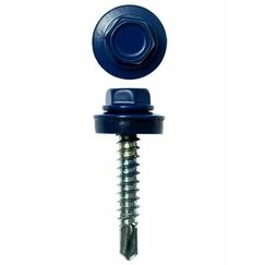 Стальные саморезы с шестигранной со сверловидным наконечником, укомплектованные шайбой с резинкой, для крепления кровельных материалов к деревянной обрещетки. Саморезы 4,8×35 мм, окрашенный ультрамарин, оцинкованные, с шайбой и прокладкой. Идеальные для кровли и фасада. Комплект 3000 шт.