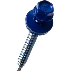 Стальные саморезы с шестигранной со сверловидным наконечником, укомплектованные шайбой с резинкой, для крепления кровельных материалов к деревянной обрещетки. Саморезы 4,8×35 мм, окрашенный ультрамарин, оцинкованные, с шайбой и прокладкой. Идеальные для кровли и фасада. Комплект 3000 шт.