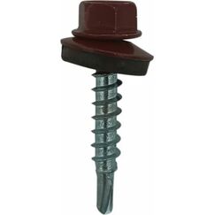 Стальные саморезы с шестигранной со сверловидным наконечником, укомплектованные шайбой с резинкой, для крепления кровельных материалов к деревянной обрещетки. Стальной саморез с антикоррозийным покрытием, EPDM-уплотнением и окраской "шоколад"- 8017, для надёжной установки кровли, по дереву и металлу.