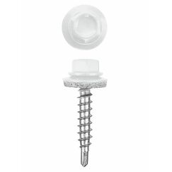 Стальные саморезы с шестигранной со сверловидным наконечником, укомплектованные шайбой с резинкой, для крепления кровельных материалов к деревянной обрещетки. Усиленный саморез 4,8×35 мм с белым полимерным покрытием для кровли, устойчив к коррозии, с герметичной шайбой, надёжен для крепления металла.
