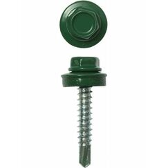Стальные саморезы с шестигранной со сверловидным наконечником, укомплектованные шайбой с резинкой, для крепления кровельных материалов к деревянной обрещетки. Крепкий зеленый саморез 4,8x35 мм с шайбой и уплотнением для надежной фиксации кровли, не ржавеет и выдерживает любые погодные условия.